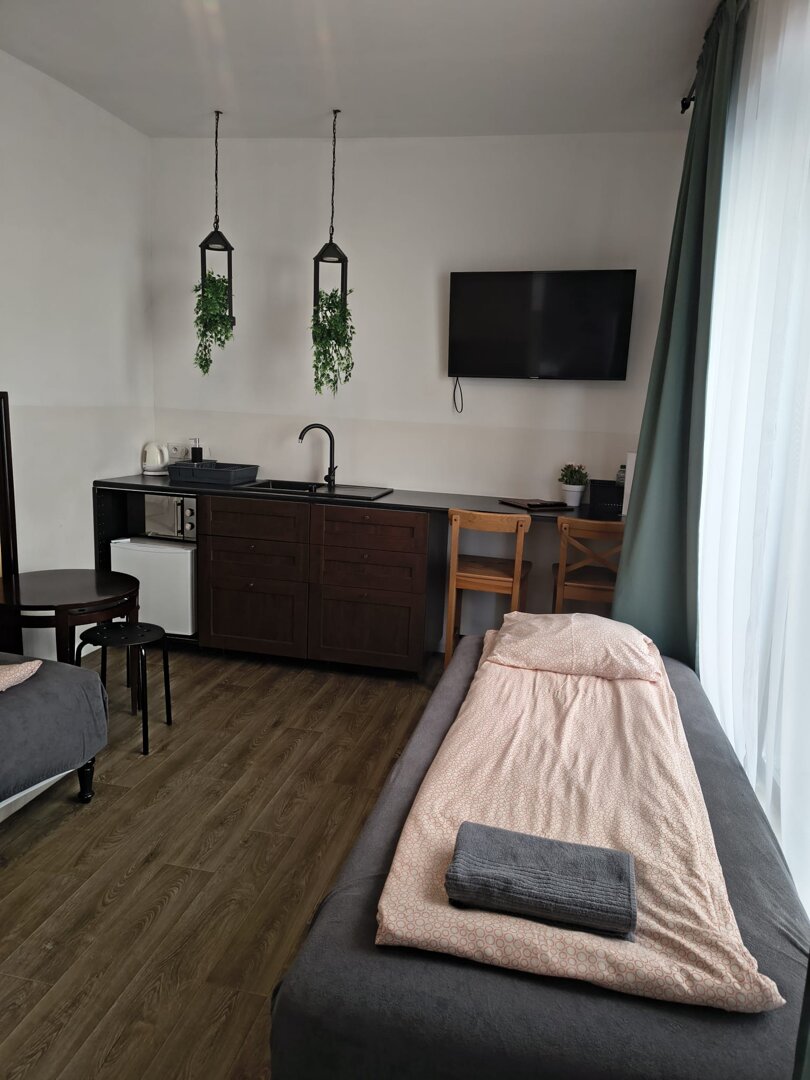 Zapraszamy do pięknie urządzonego kompleksu dwupokojowych Apartamentów dla wymagających . Świetne dla par , rodzin , ludzi podróżujących biznesowo . Pokoje urządzone w wyższym standardzie . W każdym Apartamencie dostęp do WiFi smart TV 55 cali , wygodne